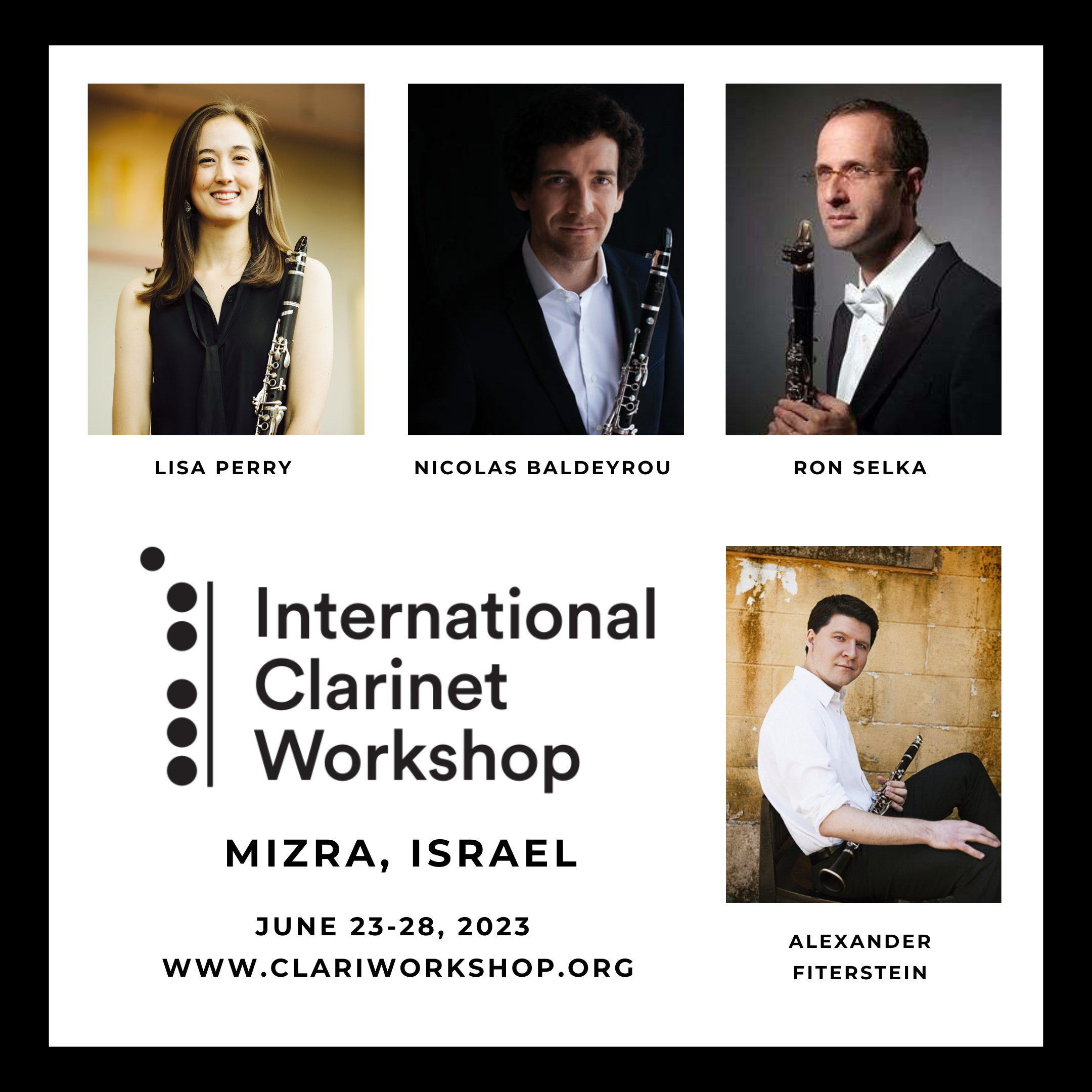 The International Clarinet Workshop (ICW) was founded by clarinetist Alexander Fiterstein in 2018. The ICW is a seminar for advanced clarinet students from around the world. In 2018 and 2019 the ICW took place in Mizra, Israel and will be back in-person in 2023. The 6-day seminar will include master classes, presentations, and panel discussions with Nicolas Baldeyrou (Virtual), Ron Selka, Lisa Perry, and Alexander Fiterstein. The workshop will also feature a competition with recorded submissions. This year’s competition pieces are Béla Kovács, Hommage á C. Debussy and Hommage á Richard Strauss.